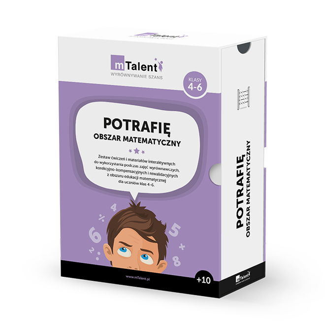 mTalent Potrafię. Obszar matematyczny to multimedialny program do wykorzystania na zajęciach korekcyjno-kompensacyjnych i dydaktyczno-wyrównawczych z uczniami w wieku 10+ drugiego etapu edukacyjnego , którzy przejawiają trudności w obszarze nauki matematyki.