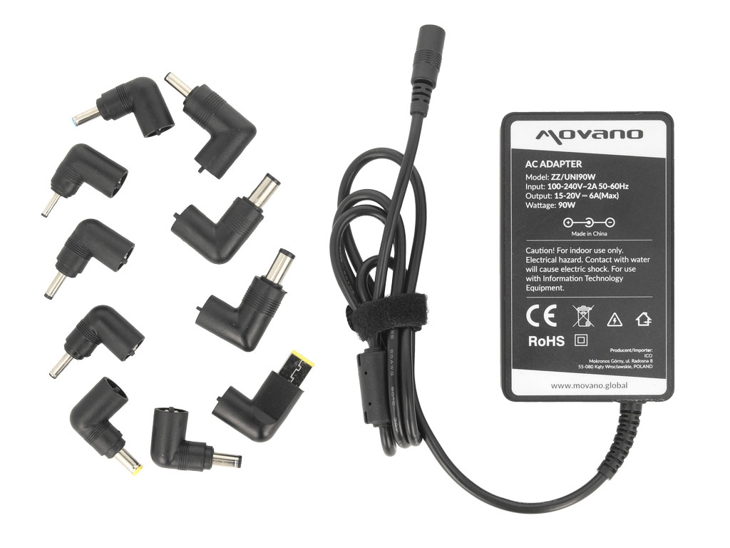 Zasilacz Movano uniwersalny 90w - 10 wtyków SLIM